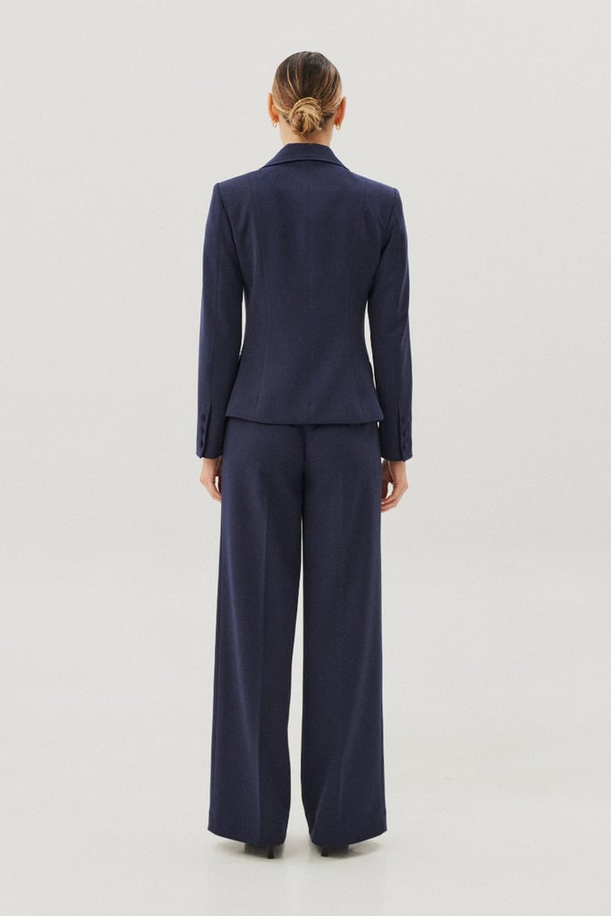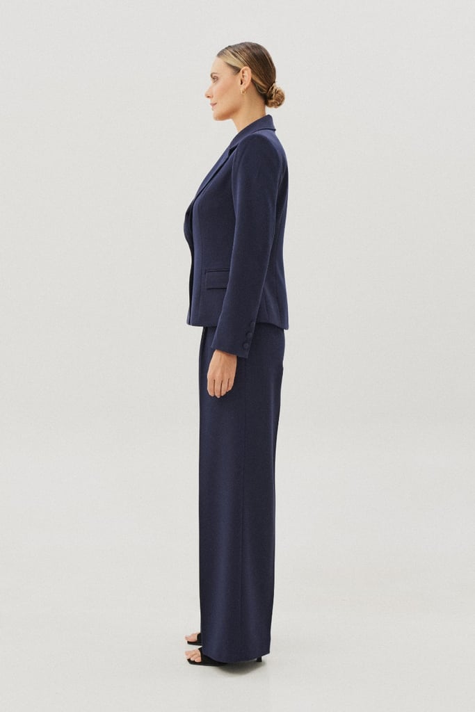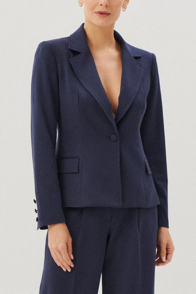 - fechamento frontal de 1 botão forrado no próprio tecido