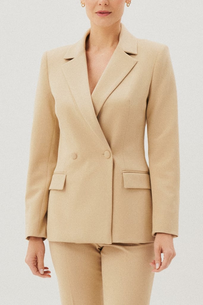 - fechamento frontal transpassado com 2 botões forrados no próprio tecido