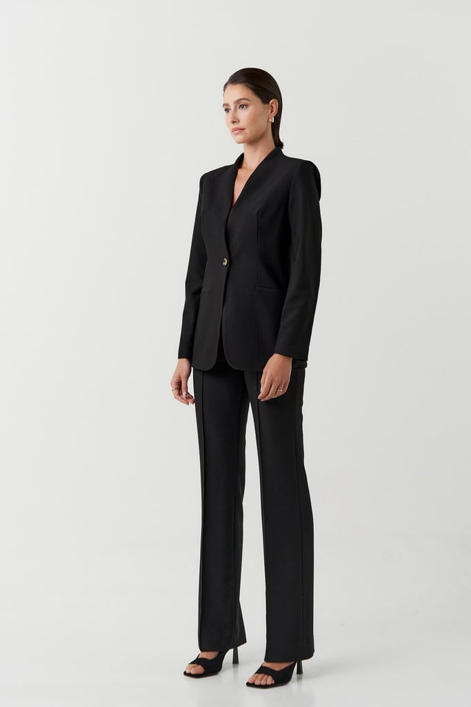Confeccionado em tecido de alfaiataria leve, toque suave e forrado em acetato.