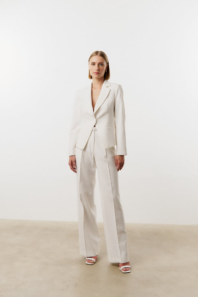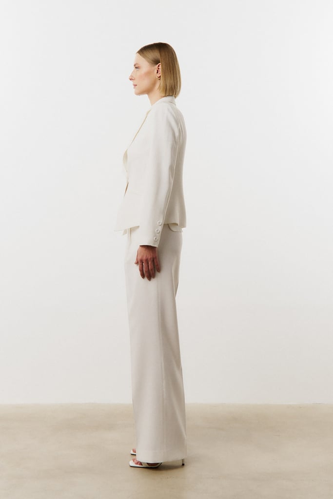 Confeccionado em tecido levemente encorpado e toque fresco.