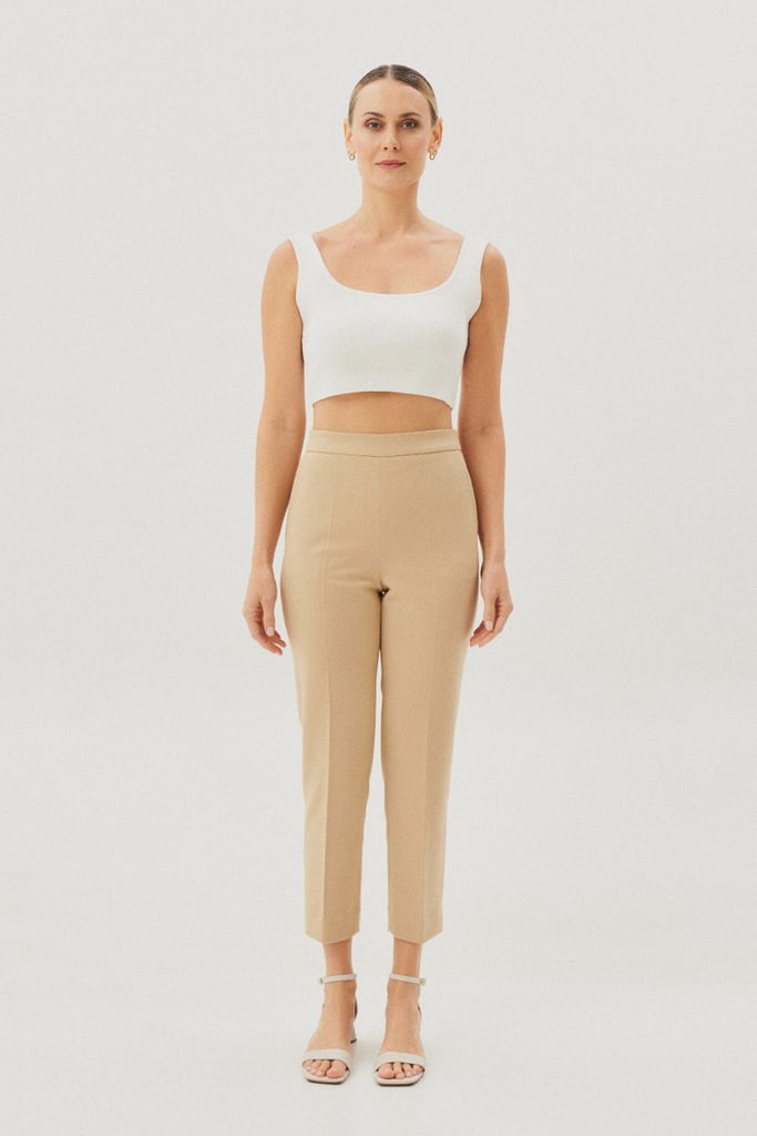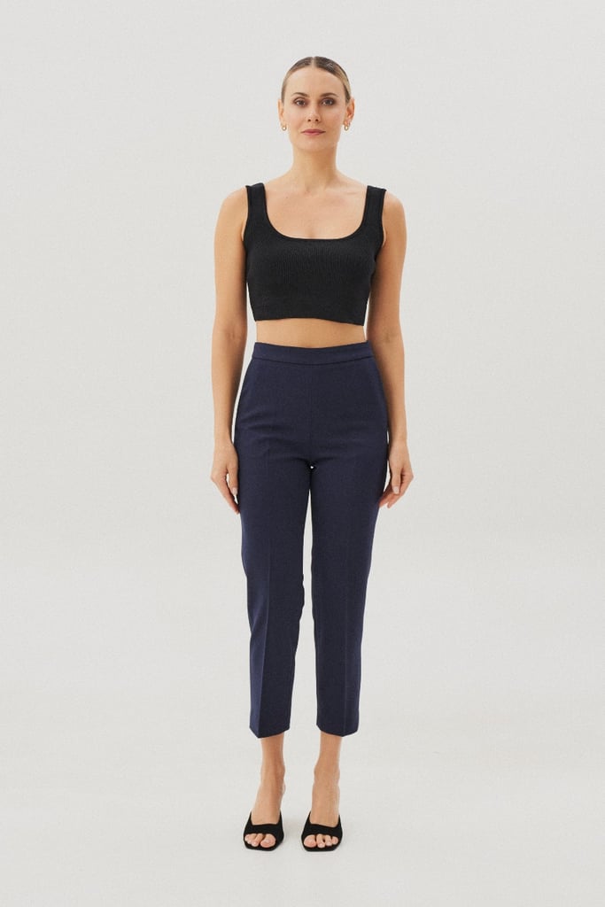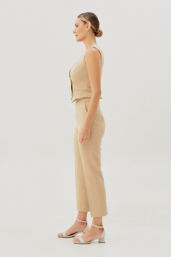 Confeccionada em tecido plano encorpado, com toque delicado.