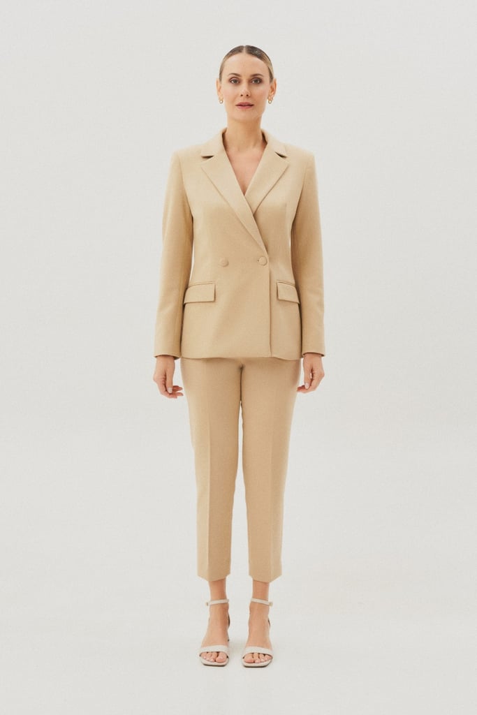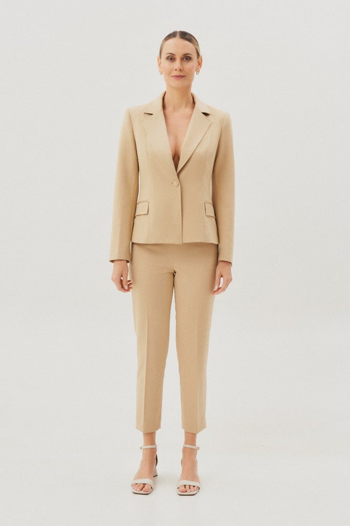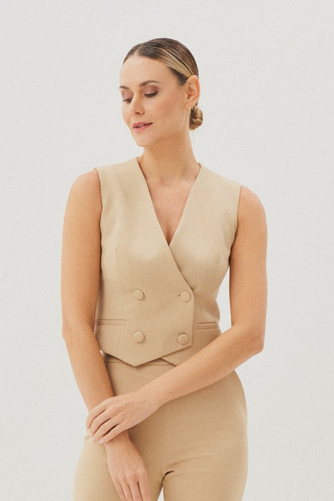 - fechamento frontal transpassado com 4 botões forrados no próprio tecido