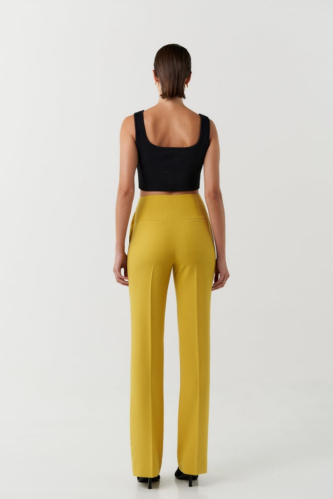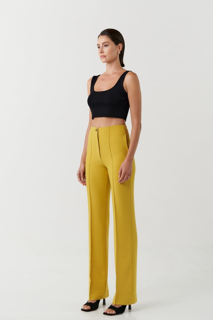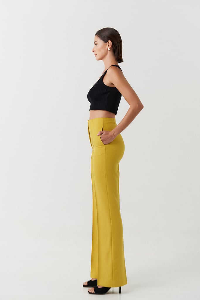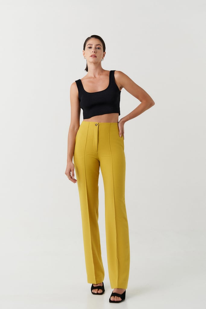 Calça confeccionada em tecido alfaiataria leve de toque suave.