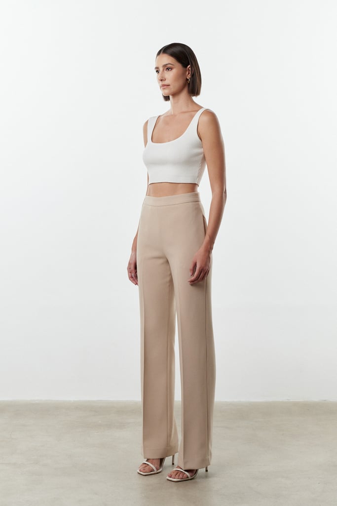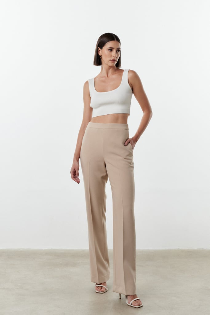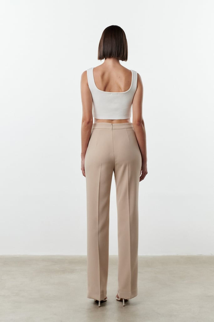 Confeccionado em tecido de alfaiataria de levemente encorpado e toque macio.