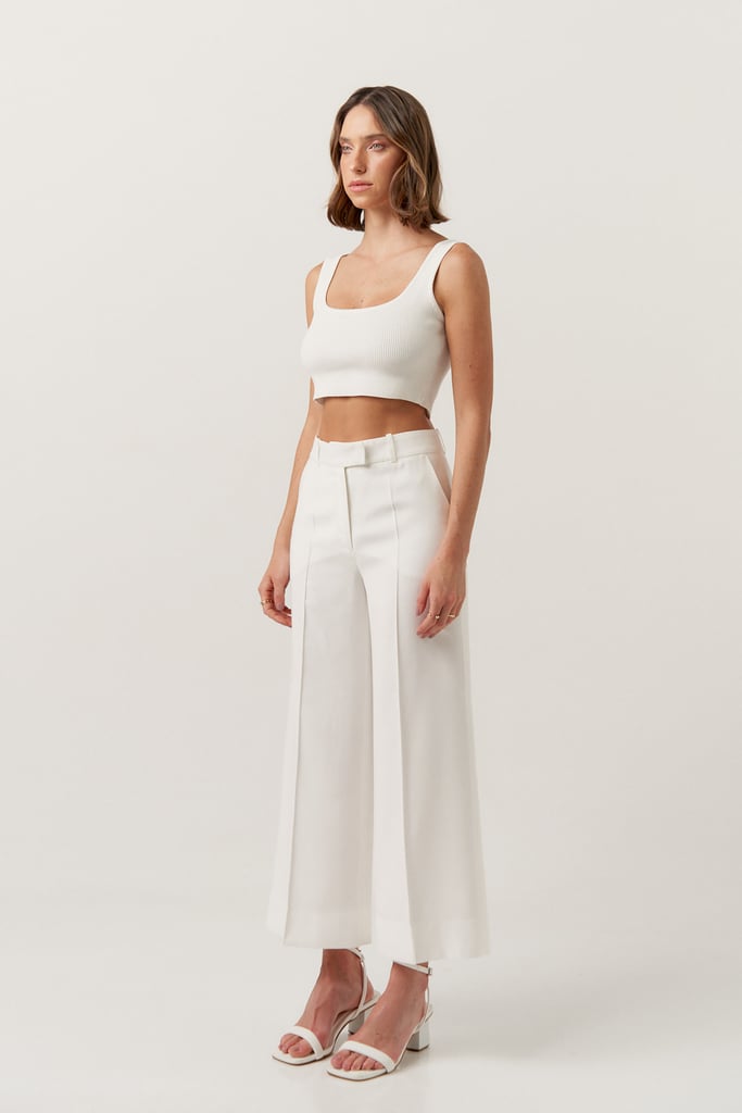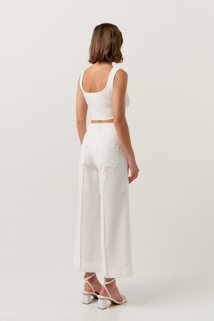 A pence da calça agrega um volume elegante à ampla modelagem.