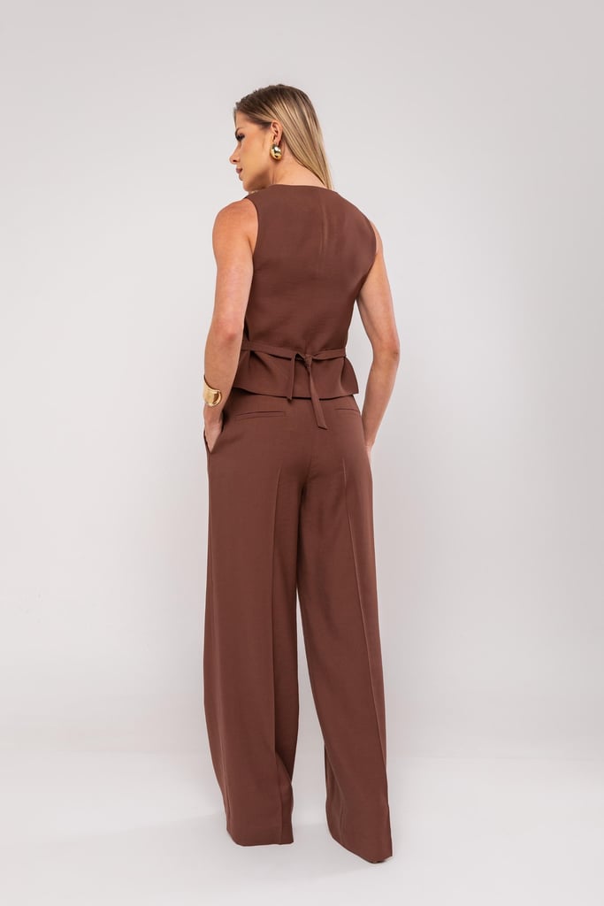 Confeccionado em tecido plano levemente encorpado, fresco e de toque frio, forrado em acetato.